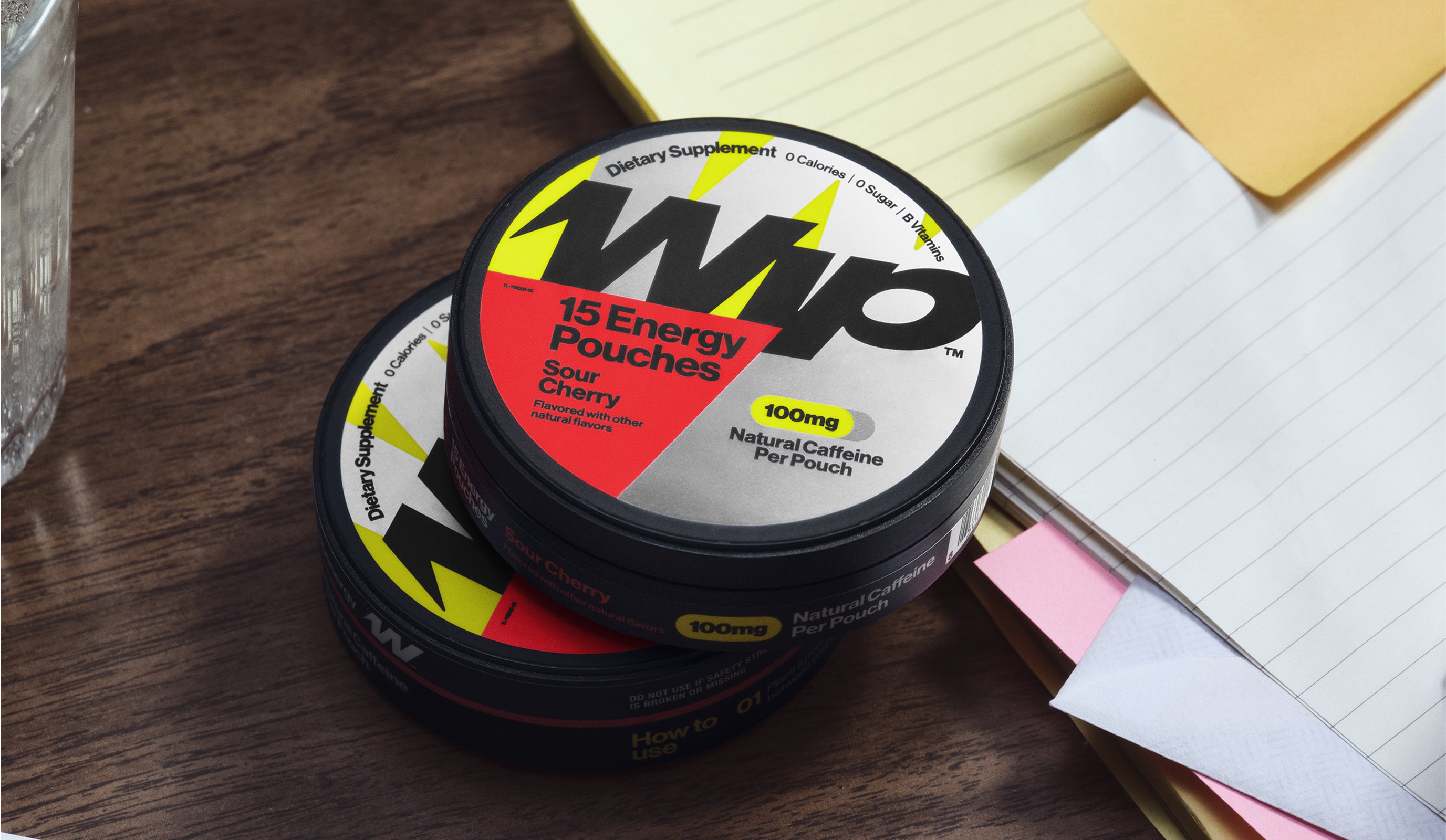 Wip pouches contain natural caffeine from green coffee beans and are available 100mg and 200mg caffeine strengths.