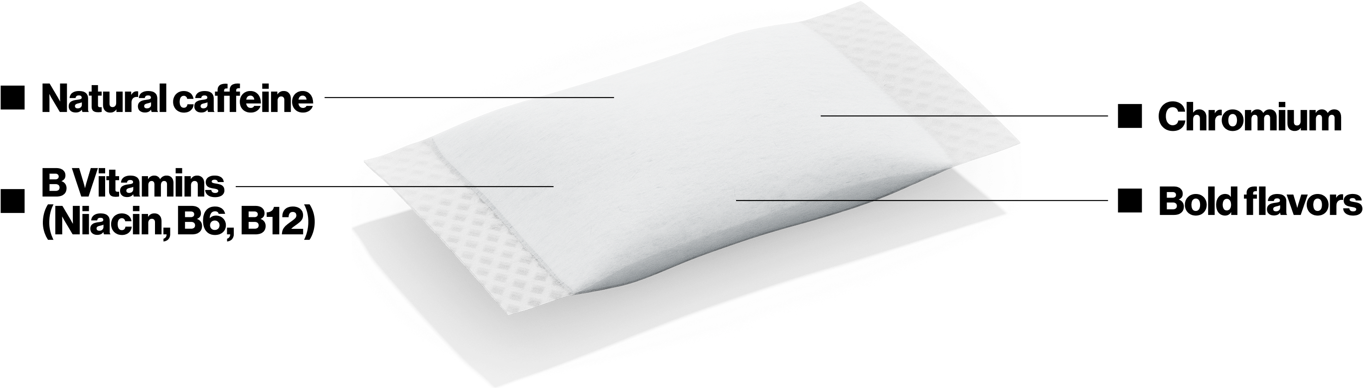 Wip pouches are thoughtfully crafted to support energy metabolism and boost cognitive functions†. We use high quality, natural caffeine, sourced from non-GMO green coffee beans, B vitamins (Niacin, B6, B12), and chromium. For more information check out our nutrition facts section.